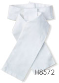 襟後ろはマジックテープ留め 光沢のあるポリエステル生地 白地に光沢感のあるライトグレーのラインと、クリスタルがエレガント サイズ